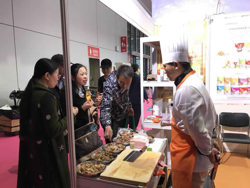 前来参观的客户正在试吃用”隆泰“香精系列制作的卤制品,都赞不绝口!